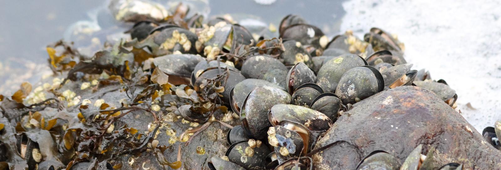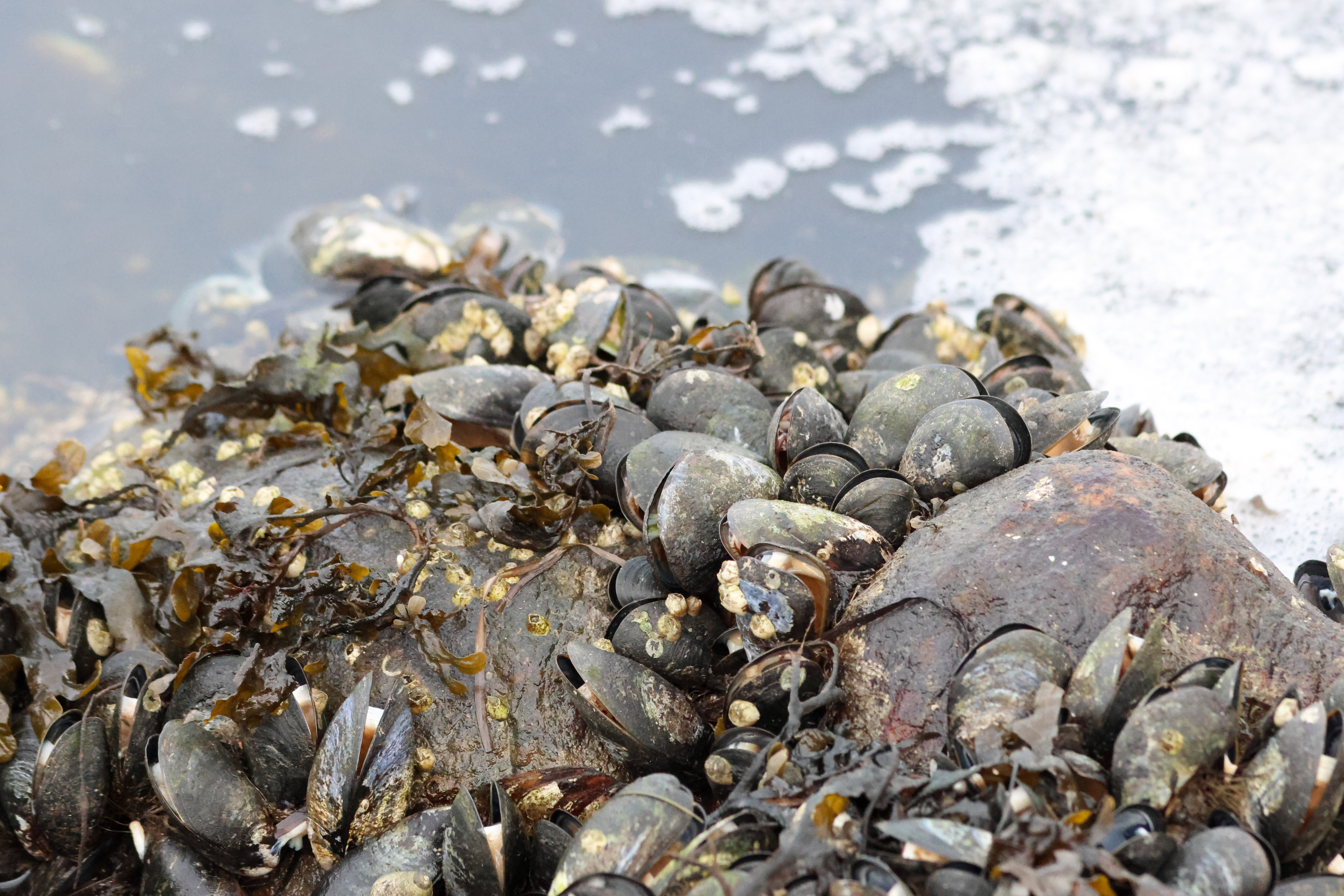 Når vandstanden er lav, kan man mange steder langs Øresund observere blåmuslinger samlet i klumper på sten. Det er ikke usædvanligt at se blåmuslinger dækket af rurer (Balanus sp.), som anvender muslingernes skaller som solidt underlag for vækst.